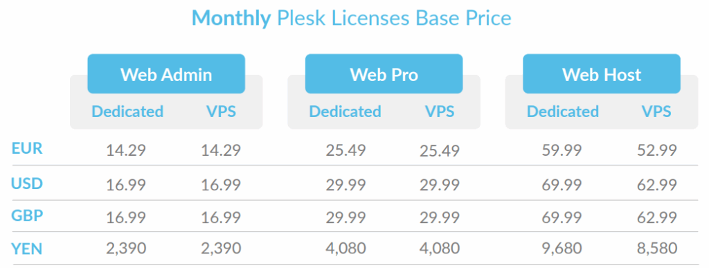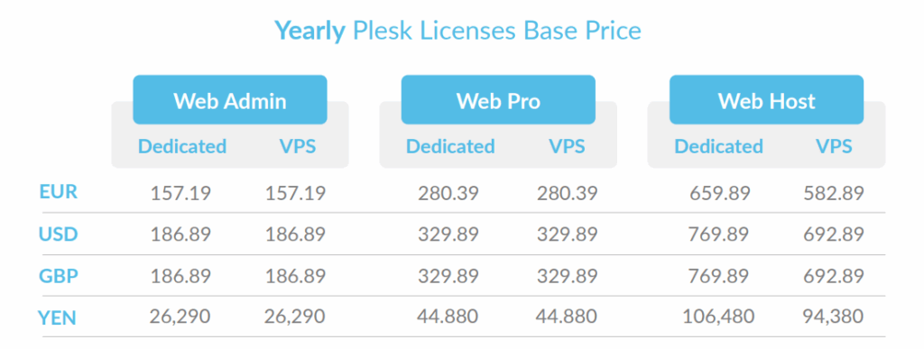 Based on current market information, the new pricing will apply across all editions of Plesk licenses — Web Admin, Web Pro, and Web Host — for both VPS and dedicated server environments.