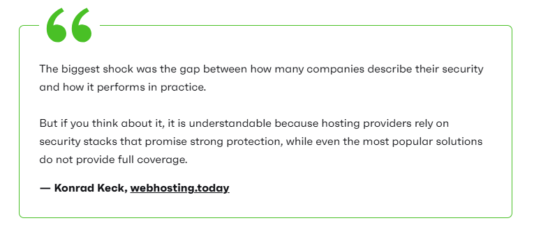 Different providers use different tools, configurations, and rule sets, yet all describe them in the same way. Two hosts can claim identical security while delivering radically different outcomes — or no real protection at all.