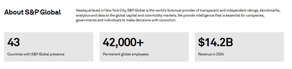 Why does data and insights from this rating agency matter? S&P Global Ratings is part of S&P Global, a financial analytics company with more than $14 billion in annual revenue and 42,000 employees (S&P Global 2024 Impact Report).