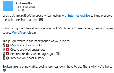 In practice, this turns every published WordPress article into a small preservation event.