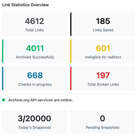 All link recovery depends on the Internet Archive being reachable.