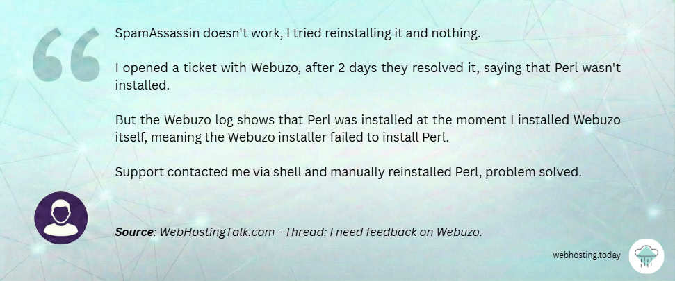 Feedback about the Webuzo team is generally positive, but hosting operators report uneven escalation flow:
