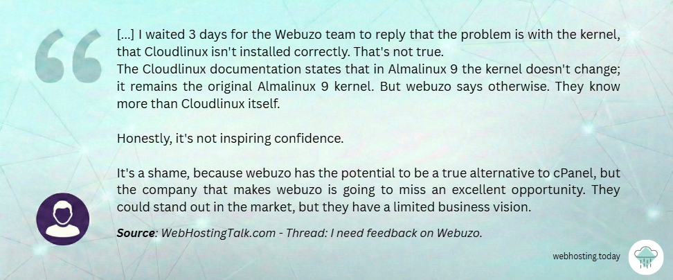 A recent discussion on WebHostingTalk – “I need feedback on Webuzo” – triggered an interesting exchange among hosting operators testing Webuzo as a potential alternative to cPanel.