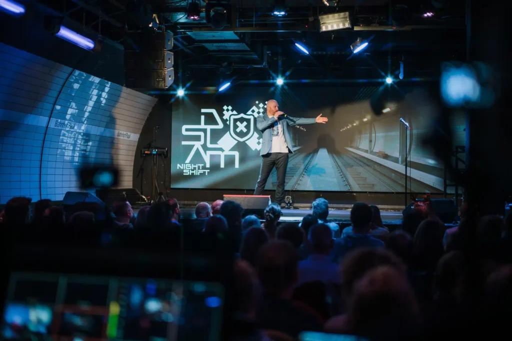 Other parts of the program include guided tours for different business groups, speed networking sessions designed to help attendees meet new partners quickly, and the popular DSLAM format, which combines technical talks with a more informal stage style.