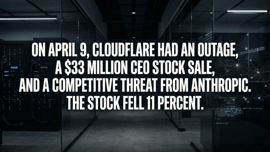 Three events landed on Cloudflare on April 9, 2026. A real infrastructure failure knocked LinkedIn, Zoom, and Shopify offline for nearly two hours. A pre-scheduled executive stock sale generated headlines about insider activity. And a product announcement from Anthropic, published the day before, gave analysts a concrete reason to reprice Cloudflare’s competitive position in AI … Continue reading Cloudflare’s April 9: Outage, $33 Million CEO Sale, and Anthropic. The Stock Fell 11 Percent.